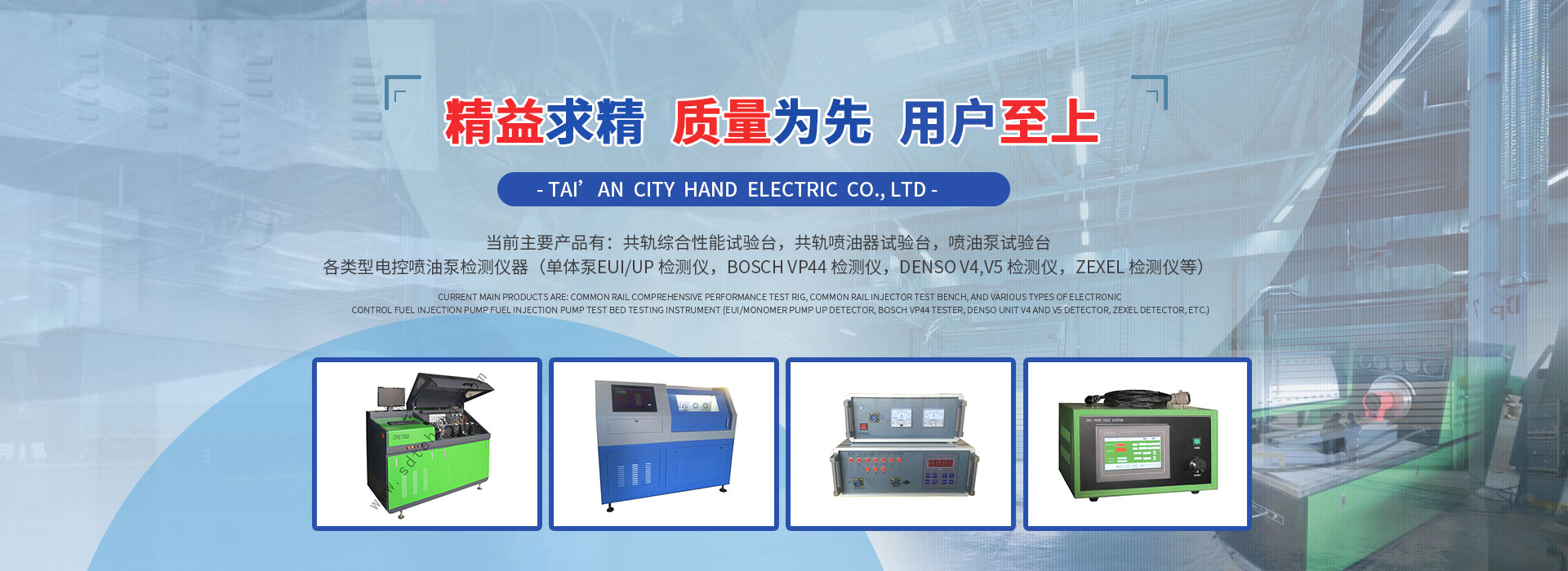 泰安市漢德電氣有限責任公司是設計、制造和生產內燃機檢測試驗設備的企業(yè),集生產制造、配件銷售為一體。隨著全球環(huán)境對環(huán)保要求的日益提高,內燃機技術相應取得長足進步,尤其是柴油機噴射系統正向著高壓、電控技術的方向迅猛發(fā)展,基于此,我們公司目前著力開發(fā)、拓展專門針對于高壓共軌系統和其他電控噴射系統的檢測設備,當前主要產品有:共軌綜合性能試驗臺,共軌噴油器試驗臺,噴油泵試驗臺,各類型電控噴油泵檢測儀器...